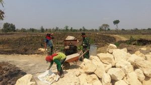 LAMONGAN,– Serka Asmuni, Bintara Pembina Desa Koramil 0812/09 Mantup terlihat bersemangat ketika membantu warga memperbaiki salah satu saluran irigasi yang berada di Desa Mojosari, Kecamatan Mantup, Kabupaten Lamongan, Jawa Timur.
