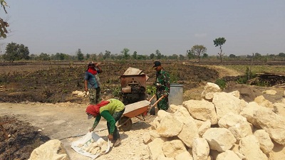 Babinsa Koramil Mantup Perbaiki Irigasi bersama Warga