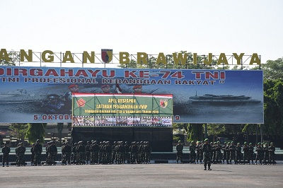 “Jawa Timur, sering dijadikan sebagai ajang kegiatan tingkat nasional maupun internasional. Presiden dan Wakil Presiden juga sering melakukan kunjungan kerja disini,” ujar Kolonel Sudaryanto usai memimpin apel pembukaan latihan VVIP di Lapangan Makodam V/Brawijaya, Surabaya. Senin, 21 Oktober 2019.