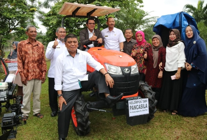 Bintan – Bupati Bintan H Apri Sujadi, S.Sos didampingi Wakil Bupati Bintan Drs H Dalmasri Syam MM, Sekda Kabupaten Bintan Drs Adi Prihantara MM serta Ketua TP PKK Kabupaten Bintan Ibu Hj Deby Maryanti menyerahkan berbagai bantuan perlengkapan bagi para kelompok petani di Kabupaten Bintan. Bantuan yang diserahkan antara lain 1 unit Traktor Roda Empat, 9 unit Cultivator, 3000 ekor ayam buras, pakan ternak 6 ton, 21 ekor Sapi Limosin , 43 ternak kambing , pupuk organik/anorganik, bantuan Irigasi Air Tanah Dangkal serta kebutuhan petani lainnya.