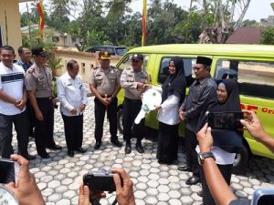 Karimun. Potretkepri.com – Bhabinkamtibmas Polres Karimun , Provinsi Kepulauan Riau ,Bripka Samson Tarigan , menyerahkan satu unit mobil ambulace kepada masyarakat Kelurahan Darussalam,Rabu ( 6 / 11 / 2019).