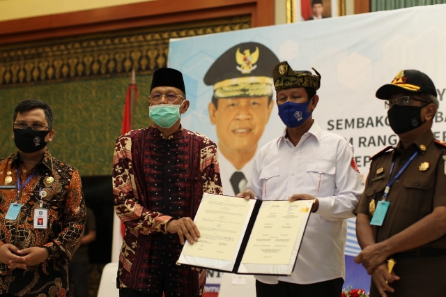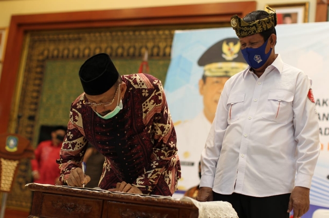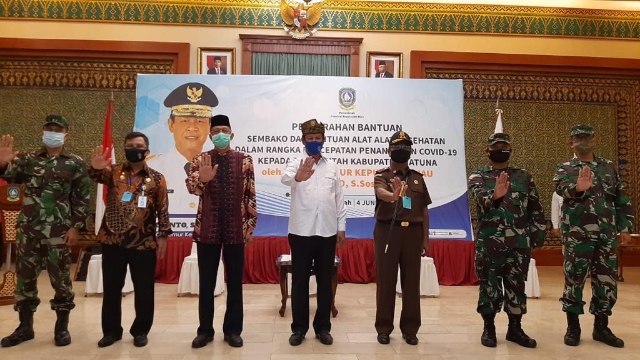 Bantuan diserahkan secara simbolis oleh Plt. Gubernur Kepri, H. Isdianto kepada Bupati Natuna, yang berlangsung di Gedung Daerah Provinsi Kepri Kota Tanjungpinang pada Kamis (04/06) siang melalui acara penandatanganan bantuan penanggulangan Covid-19 bagi Kabupaten Natuna.