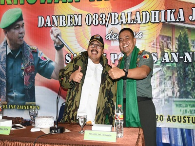 Sebagai generasi muda, kata Danrem 083/Baladhika Jaya, Santri diharuskan untuk mempunyai kemampuan dan integritas. “Tidak ada satupun yang bisa merubah nasib bangsa ini, kecuali para pemuda. Dan tidak satupun yang menentukan masa depan bangsa, kecuali para generasi muda,” ujar Danrem dalam kunjungannya di Ponpes An-Nur saat ini. Selasa, 20 Agustus 2019.