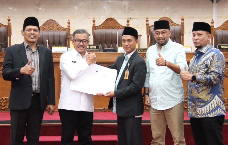 Ketua Pansus Aman SPd pun mewakili rekan-rekannya membacakan laporan akhir tersebut. Selain dibacakan, laporan akhir pansus juga dipaparkan pada layar lebar di depan dan layar-layar di penjuru ruangan Dewan.