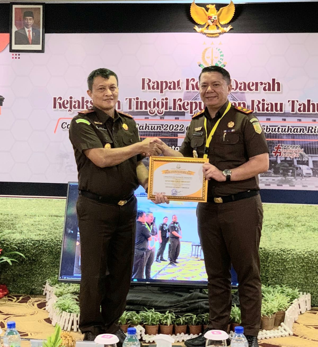 Penyerahan penghargaan di berikan lansung oleh Kejaksaan Tinggi DR. Rudi Margono, S.H.,M.Hum.