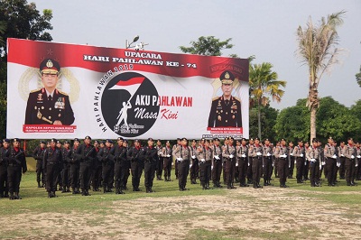 Batam,potretkepri.com-Peristiwa pertempuran 10 November 1945 di Surabaya sebagai salah satu momen paling bersejarah dalam merebut kemerdekaan Indonesia, dan pada hari ini minggu (10/11) diperingati sebagai Hari Pahlawan. Polda Kepri menggelar Upacara Hari Pahlawan ke-74 dengan mengangkat tema ″AKU PAHLAWAN MASA KINI″.