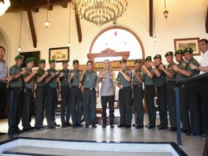 Kedatangan para Perwira TNI-AD itupun, langsung disambut hangat oleh para personel hingga Kapolrestabes Surabaya, Kombes Pol Sandi Nugroho.