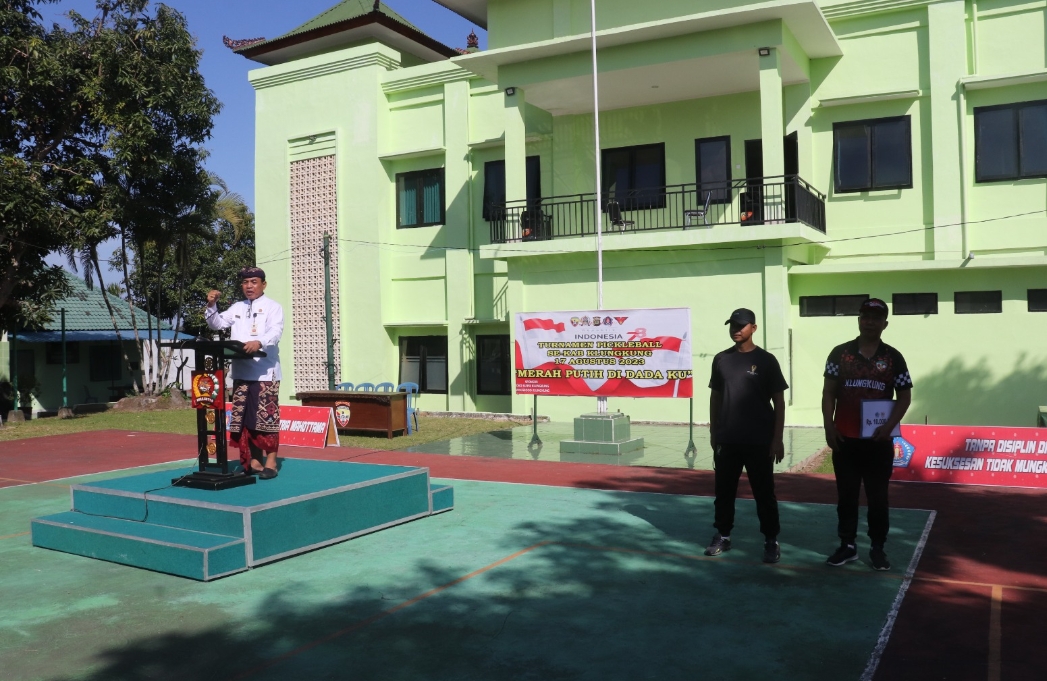 “Ini sarana yang tepat untuk memperkuat silaturahmi,” kata Kadispora Klungkung disela amanat pembukaan turnamen yang ia bacakan. Senin (14/08/2023) sore.
