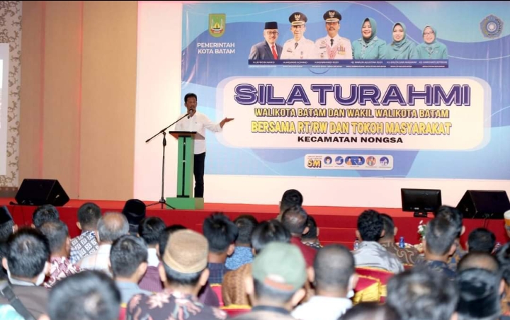 Batam,potretkepri.com- Wali Kota Batam Muhammad Rudi bersilaturahmi dengan RTRW dan Tokoh Masyarakat Nongsa, di Hokkie Hotel Batam, Rabu (22/6) malam.