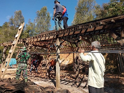 “Saya juga kasihan melihat bapak-bapak itu bekerja sendirian. Daripada saya nganggur, lebih baik saya ikut bantu bapak-bapak Tentara itu,” aku Saeran. Kamis, 18 Juli 2019.