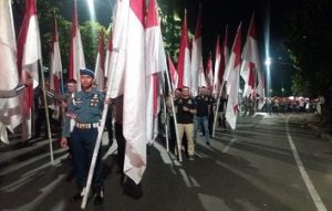 Bukan hanya itu saja, parade merah putih dalam memperingati Hari Pahlawan 10 Nopember tersebut, juga dihiasi dengan adanya pengibaran bendera merah putih raksasa.
