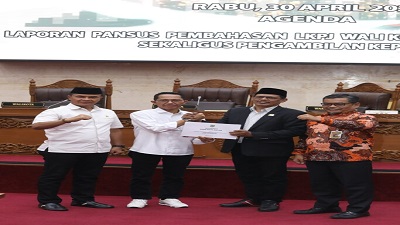 Usai laporan Pansus, Ketua DPRD Kamaluddin pun menanyakan apakah seluruh anggota Dewan yang hadir dapat menyetujui rekomendasi pansus berkenaan. Seluruh anggota Dewan pun menyatakan setuju sehingga rapat dilanjutkan dengn penyerahan rekomendasi kepada Walikota Amsakar Achmad. Tidak berselang lama, rapat paripurna berkenaan pun ditutup.(*)