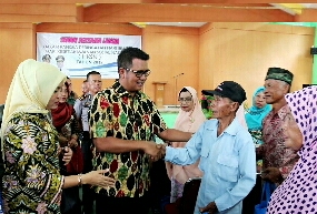 Terlihat, Bupati Bintan H Apri Sujadi, S.Sos bersama Ketua Lembaga Koordinasi Kesejahteraan Sosial (LK2S) Kabupaten Bintan Ibu Hj Deby Apri Sujadi berbagi kasih bersama Ratusan Kaum Lansia dengan memberikan Santunan. Dirinya juga memanfaatkan kegiatan tersebut untuk bersilaturahmi dan saling bertukar pikiran .