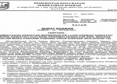 Batam , potretkepricom-Pemerintah Kota Batam kembali menerbitkan Surat Edaran (SE)bernonor 19 Tahun 2021. Surat Edaran ini mengatur tentang cuti Aparatur Sipil Negara (ASN) yang ingin bepergin keluar daerah atau mudik dimasa Pandemi Corona virus Disease (Covid-19).