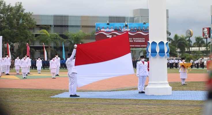 Batam,potretkepri.com – Upacara peringatan Hari Ulang Tahun (HUT) ke-76 Republik Indonesia (RI) di Dataran Engku Putri berlangsung khidmat. Di tengah pandemi virus corona (Covid-19), upacara dilaksanakan dengan protokol kesehatan yang ketat.