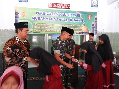 Bukan hanya peringatan Maulid Nabi saja, ternyata, acara tersebut juga diwarnai dengan adanya pemberian santunan. Dikatakan Letkol Ronald, pemberian santunan yang ia lakukan saat ini, sangat sejalan dengan tema kegiatan yang diusung saat ini.