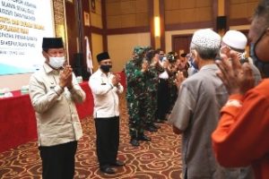 Dompak,potretkepri . com-Plt. Gubernur Kepri, H. Isdianto menggelar silaturahmi bersama Tokoh Agama, Adat, Masyarakat dan Alim Ulama sekaligus penyerahan Hand Sanitizer dan Masker kepada Gugus Tugas kabupaten dan kota juga rumah ibadah se- Provinsi Kepri di Aula Wan Seri Beni, kantor Gubernur, Dompak, Jumat (29/5).