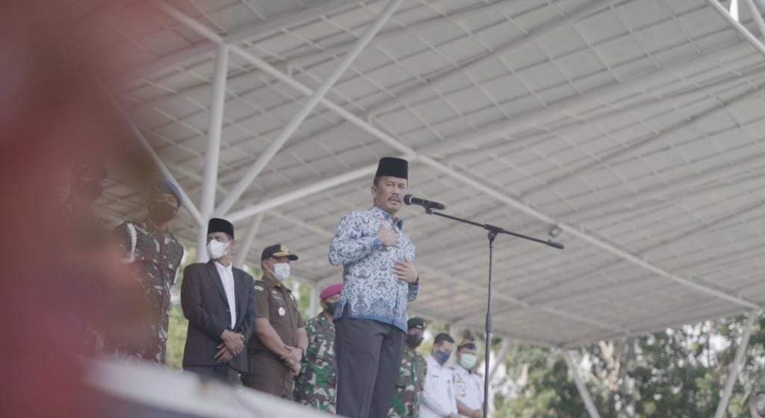 Wali Kota Batam ,HM Rudi ,memimpin Upacara 17 Hari Bulan tingkat Kota Batam ,di Dataran Engku Putri, Kamis (17/3/2022). foto (pk)