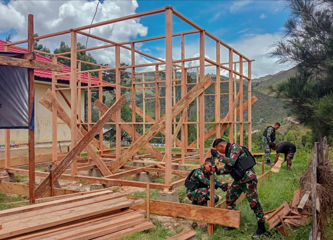 Seperti adanya penambahan ruang kelas di SD YPPGI, Desa Weri, Distrik Yiginua, Kabupaten Lanny Jaya, Papua. Rabu (23/08/2023). Penambahan ruang kelas itu, tak luput dari adanya peran Satgas dibawah kendali Letkol Inf Heri Kuswanto.