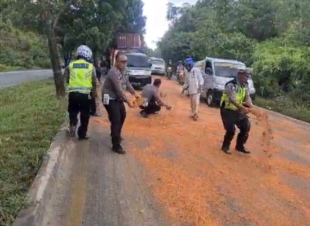Solar Tumpah Lumuri Jalan Sekitar Bukit Daeng,Polisi Bergerak Cepat