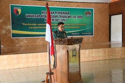 Kali ini, Kepala Seksi Teritorial Korem berkesempatan untuk mensosialisasikan wasbang di Pendopo Griya Paramitra Korem Cikaran, Kecamatan Magersari, Kabupaten Mojoketo, Jawa Timur. Jumat, 21 Februari 2020.