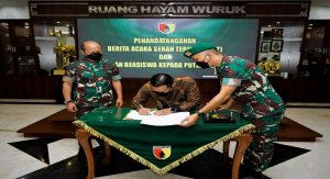 Surabaya,potretkepri.com- Pangdam V/Brawijaya, Mayjen TNI Nurchahyanto, M. Sc. menandatangani Berita Acara Serah