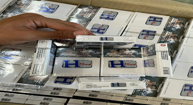 Selantpanjang,potretkepri.com-Bea Cukai (BC) Selatpanjang menyita ratusan slop rokok merek H Mind dari