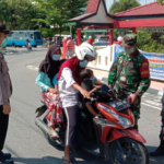 Karimun. Potretkepri.com. – Polsek Balai Karimun Gelar Razia Gabungan TNI – Polri Satpol PP dan Dinas Perhubungan Kabupaten Karimun, menggadakan razia terhadap pengendara maupun pejalan kaki yang tidak menggunakan masker sebagai upaya mencegah penyebaran Virus Corona Covid 19. Sabtu ( 18 / 4 / 2020 ) Bertempat Simpang Polsek Balai. Pukul : 08.30 Wib s/d 10.00 Wib