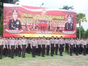 Ia mengucapkan selamat Kepada 362 Personel Polda Kepri dan jajaran yang telah dinaikkan pangkatnya setingkat lebih tinggi dengan rincian terdiri dari 279 Personel Polri dan 83 PNS Polri , Personel Polda Kepri sebanyak 148 Personel terdiri dari 6 Perwira, 106 Bintara dan 36 PNS Polri yang dinaikan pangkatnya setingkat lebih tinggi.Polres/Ta jajaran Polda Kepri sebanyak 214 Personel terdiri dari 12 Perwira, 155 Bintara dan 47 PNS Polri dinaikan pangkatnya setingkat lebih tinggi.